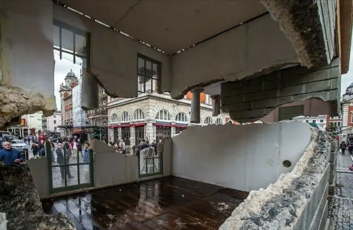 В районе Ковент-Гарден, Лондон, Алекс устроил настоящее шоу иллюзий и построил тут левитирующий особняк