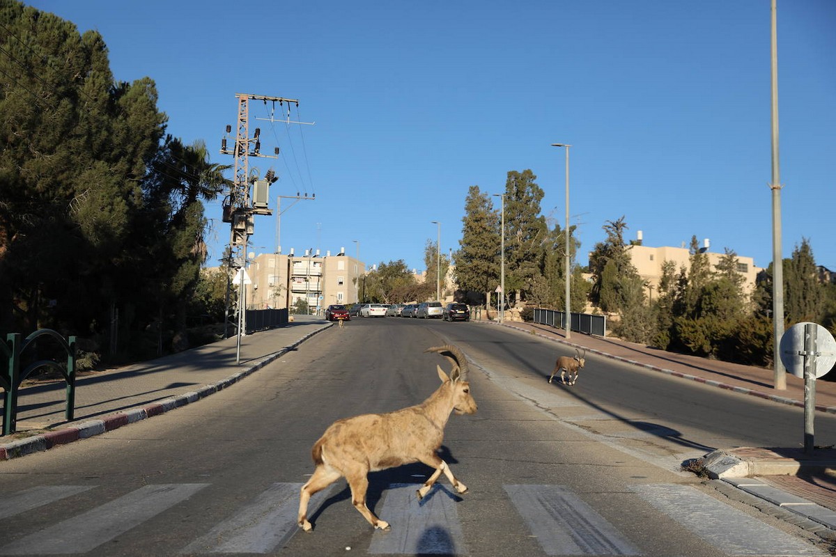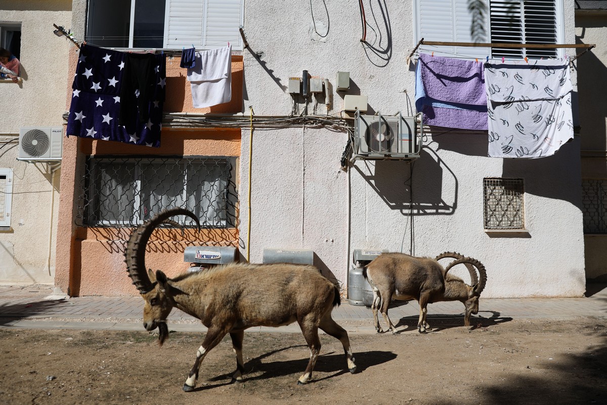 Этим воспользовались нубийские горные козлы, которые оккупировали городские улицы в поисках пищи. Вот такую картину наблюдали фотокорреспонденты в Мицпе-Рамон, Южный Израиль, 22 января.