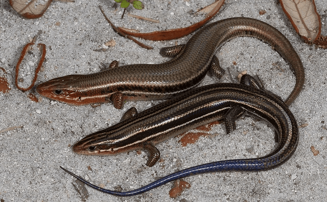 Эти ящерки рождаются с синим хвостом. Но с возрастом самцы теряют синий цвет на хвосте и обретают рыжеватую окраску на голове, а самки остаются такими же синехвостыми.