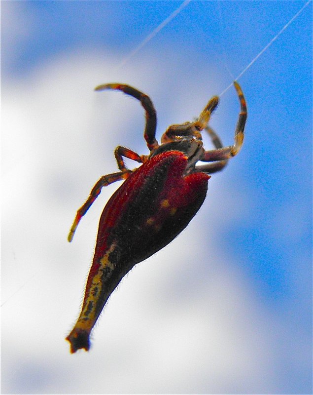 Однако, несмотря на устрашающий вид «хвоста», шипы на его кончике мягкие, и паук не способен ужалить ими, как это делают скорпионы, или поранить. Поэтому ученые до сих пор задаются вопросом: почему брюшко паука имеет такую необычную форму?