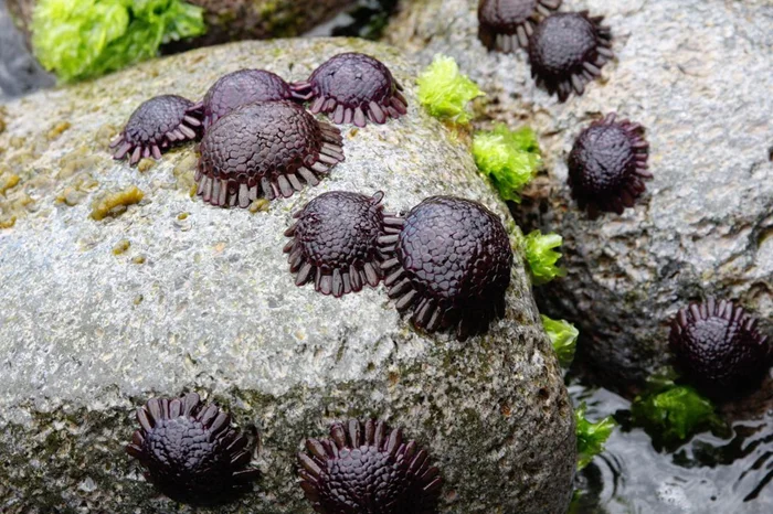 Если вы попытаетесь взять такое яичко в руку — удивитесь, как крепко оно цепляется за камни. Это вторая линия обороны — против капризов погоды. Юбочка из ножек и обтекаемая форма делает шлемовидного ежа в три раза устойчивее к штормам, по сравнению с другими прибрежными иглокожими.