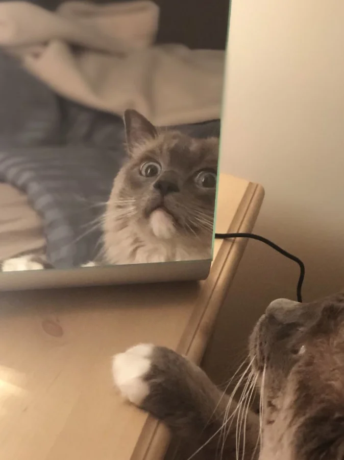 Животные, прошедшие тест на самосознание, такие как дельфины и слоны, считаются высокоинтеллектуальными существами. Однако наши питомцы, скорее всего, не узнают себя в зеркале. Вместо этого они, вероятно, видят в отражении кого-то неожиданного, удивительного и невероятно милого. Судя по их комичным выражениям и гримасам, они испытывают настоящее откровение.