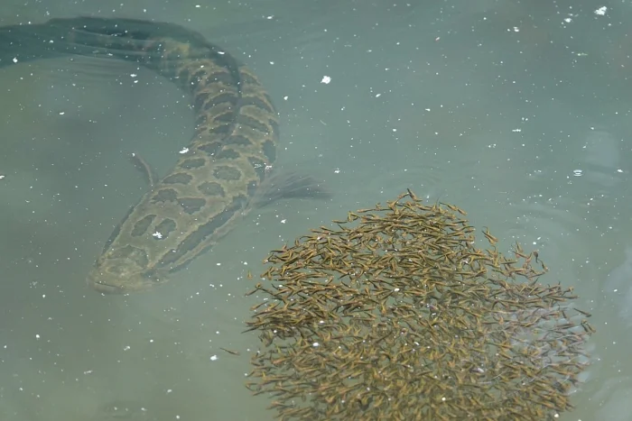 Второй вариант — закопаться в ил. Рыба углубляется в грунт на метр, покрывается слоем слизи и впадает в состояние анабиоза. В таком виде она может пережидать засуху несколько месяцев, пока водоём снова не наполнится водой.