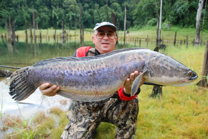 Змееголов — это настоящий монстр среди рыб, словно созданный в безумной лаборатории. Это существо бросает вызов природе, дыша атмосферным воздухом и передвигаясь по суше. Более того, он способен месяцами находиться в спячке под землёй, а затем оживать, будто только что проснулся от лёгкого сна!