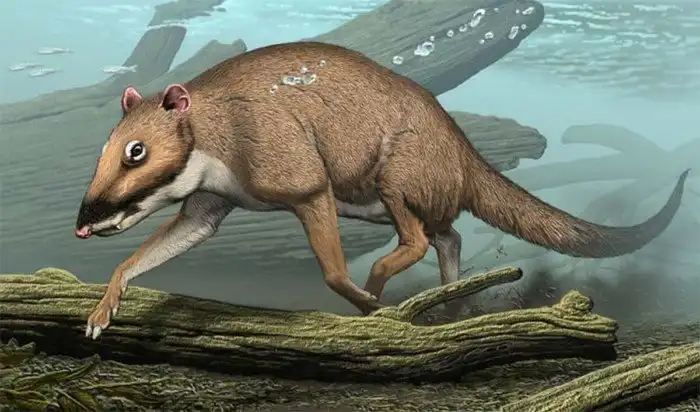 Они были хищными и полуводными. На связь с китами намекают строение костей черепа и ушей, которые все равно не были приспособлены к слуху под водой. В море, скорее всего, ушли из-за того, что с суши их прогнали конкуренты, и им пришлось есть рыбу. Еще у нас есть индохиус (50-48 млн лет назад) из Индии. Это были оленькоподобные милахи размером с кота, травоядные, полуводные и тоже с хвостом кенгуру.
