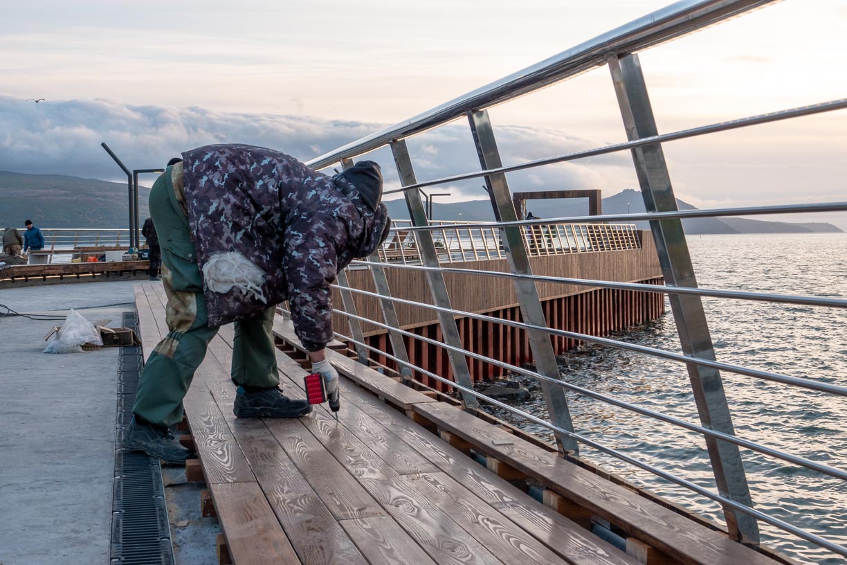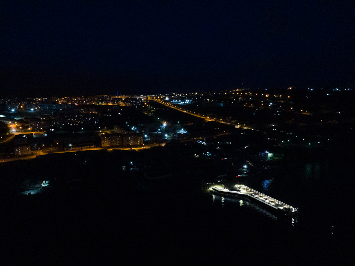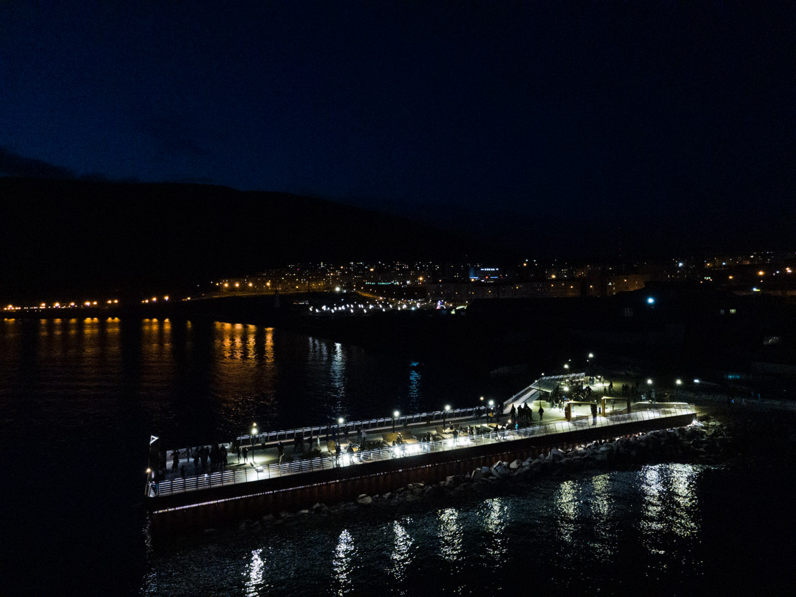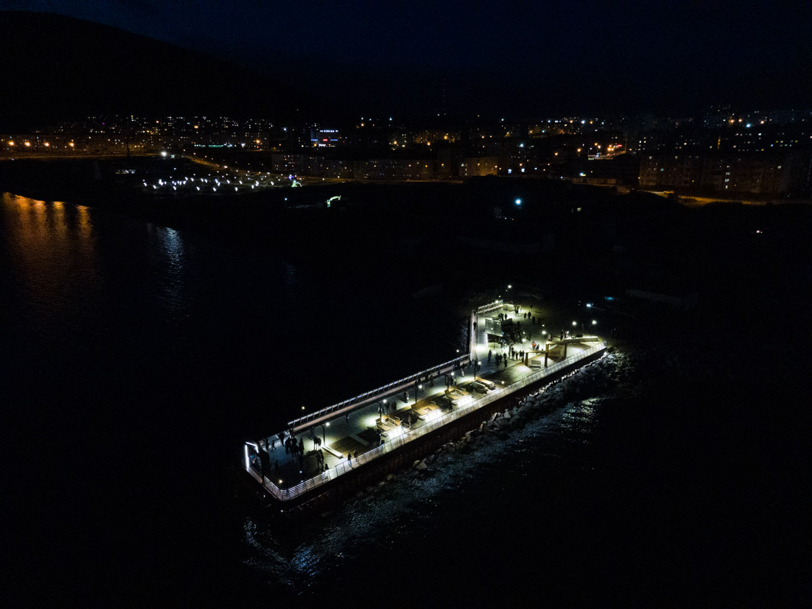 Подчеркивая значимость момента, на пирсе начало работу освещение. Теперь приятные теплые лампы будут светить для колымчан каждую ночь.