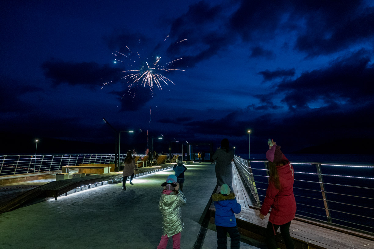 В Магадане состоялось торжественное открытие нового городского пирса в бухте Нагаева. Еще за несколько часов жители начали собираться на берегу, и ни морскому ветру, ни сгущающимся сумеркам не удалось испортить их праздничный настрой.