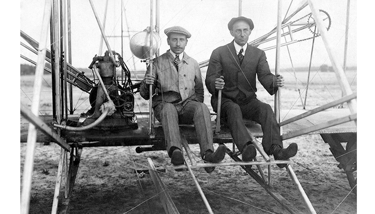 Братья Уилбур и Орвилл Райт, за которыми в большинстве стран признаётся приоритет конструирования и постройки первого в мире самолёта.
