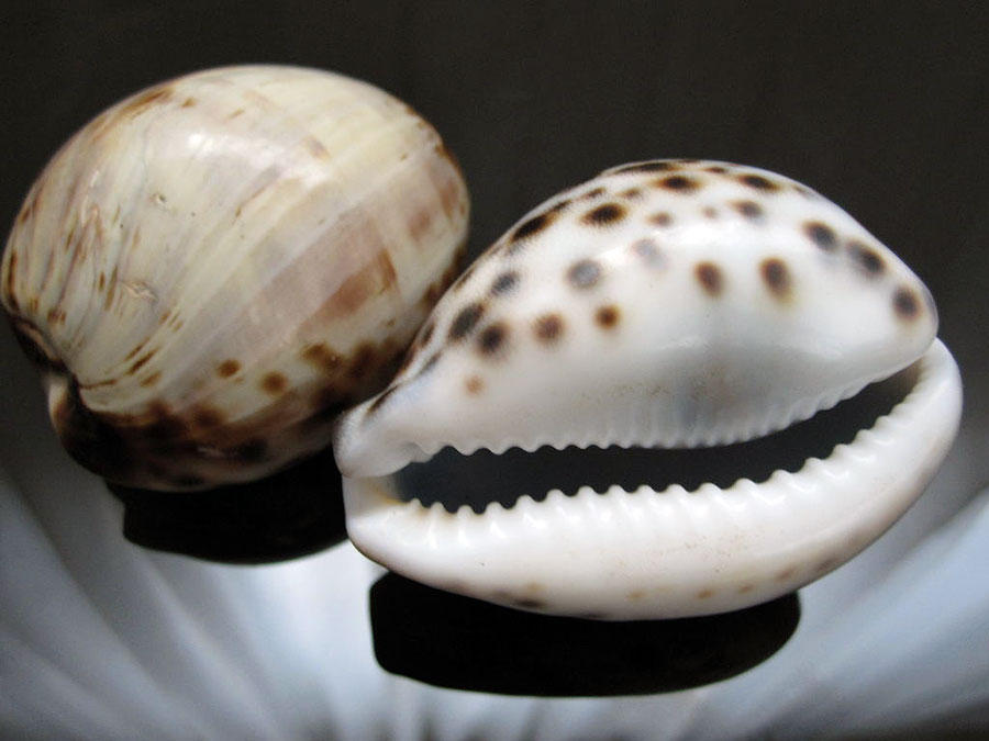 Раковины каури (раковины фарфоровой улитки) являются одной из самых первых форм древней валюты. Они маленькие по размеру, легкие и прочные, к тому же их очень трудно подделать (хотя некоторые люди все же умудрялись делать фальшивые раковины каури из таких материалов, как рога, кости, свинец и даже серебро и золото). Из каури также изготовляли потрясающие ювелирные изделия и украшения.