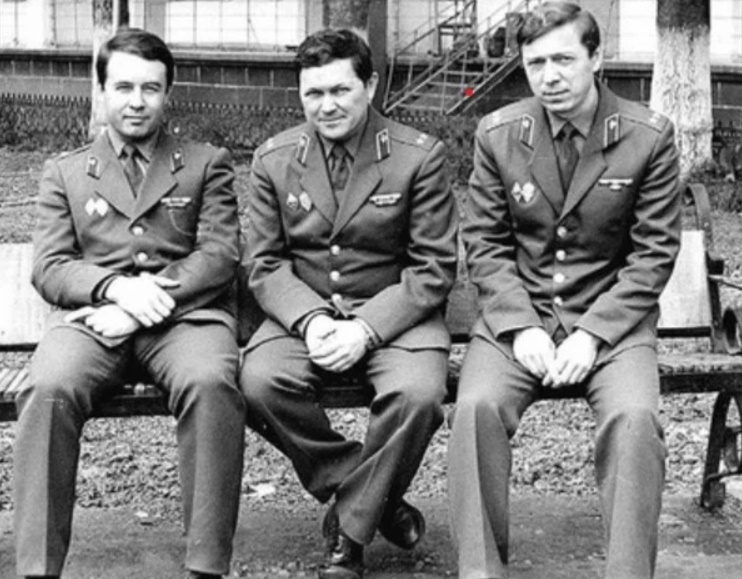 Подполковник м/с Ю.А. Воробьев после операции. Слева от него Н. Моторин, справа — Н. Никифоров, оказывавшие ему помощь в организации операции.