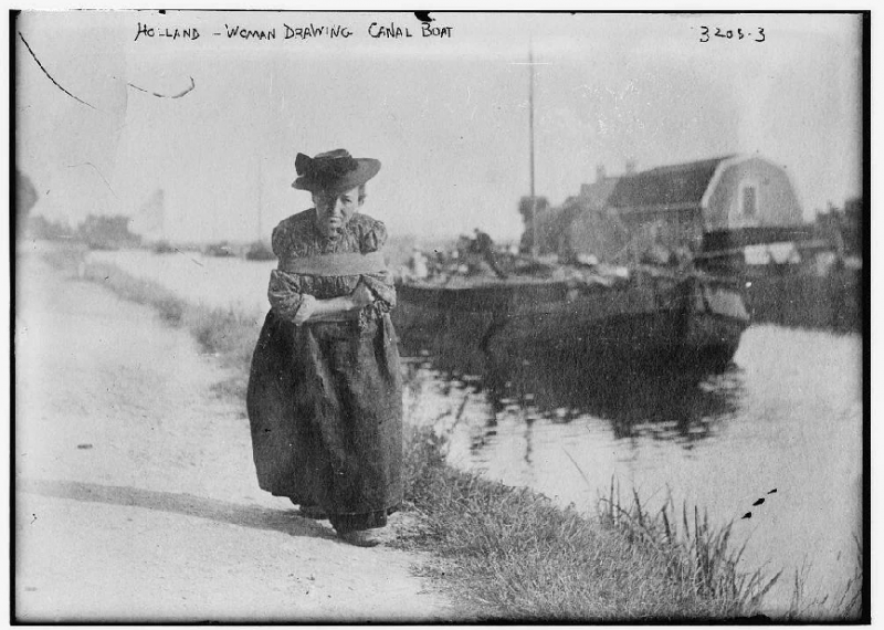 А это – женщина-улитка из Голландии, которая идет, таща на себе свой плавучий дом. 1891 год, где-то на каналах.