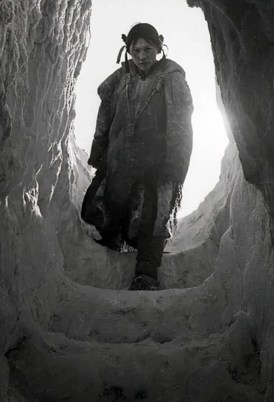 19. В Арвиате, Нунавут (Северная Канада), инуитка спускается в иглу, 1949