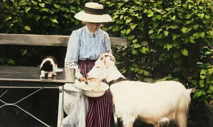 Женщина с козой. Швеция, 1913 год.