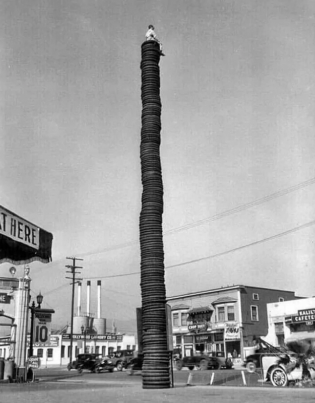 Готовы посчитать, сколько шин оказалось под мужчиной? Лос-Анджелес, 1929-й
