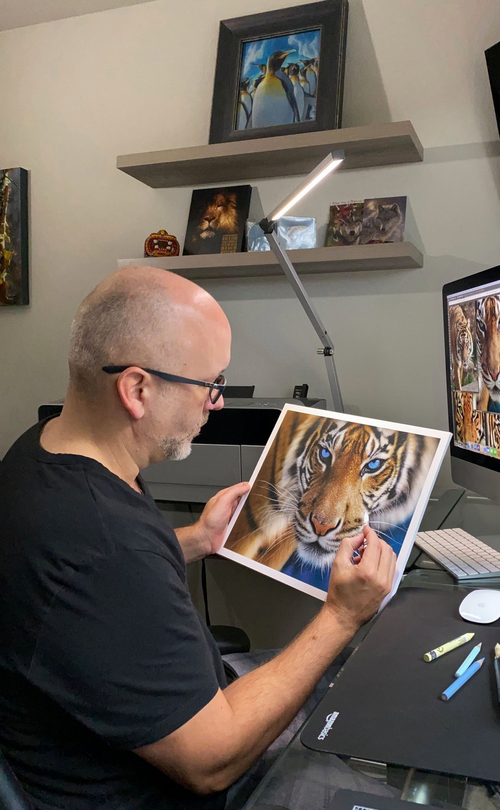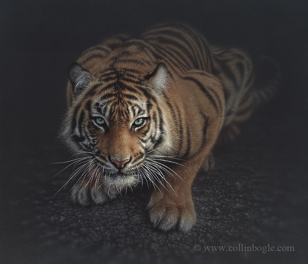 Американский художник Коллин Богл (Collin Bogle) использует цветные карандаши, пастель на водной основе и аэрографы, чтобы изобразить реалистичные портреты животных. 47-летний мужчина проводит от двух недель до двух месяцев, кропотливо создавая каждое произведение искусства.