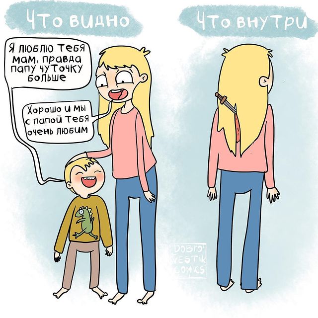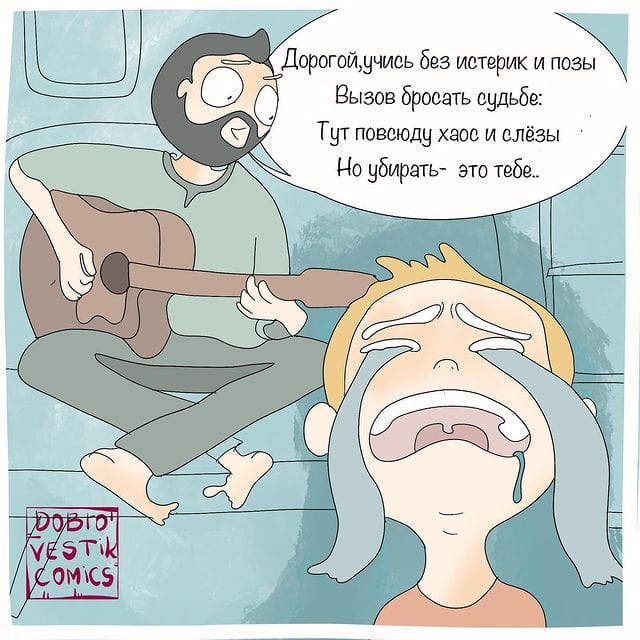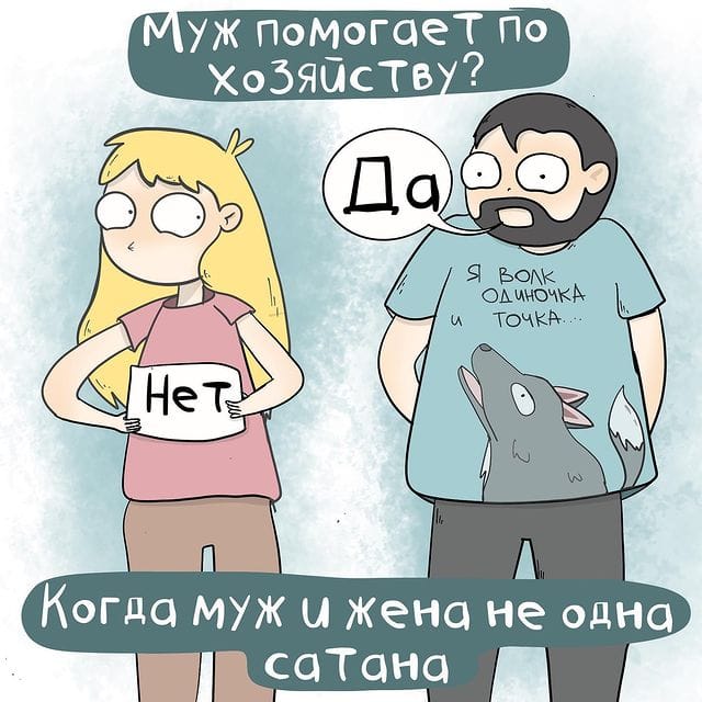 Семейная жизнь — это отдельный мир, в котором хватает места и весёлым моментам, и печальным. Но в каком бы мирке вы не жили, главное — это ваше отношение ко всему происходящему. Прекрасная девушка по имена Веста считает так же. Поэтому, вооружившись позитивом и добром, иллюстраторка делится через экран не только лучиками Сахалинского солнышка, но и тёплыми комиксами о материнстве и об отношениях с горе-мужем. Ведь он — тот ещё знаток того, как иногда надо косячить.