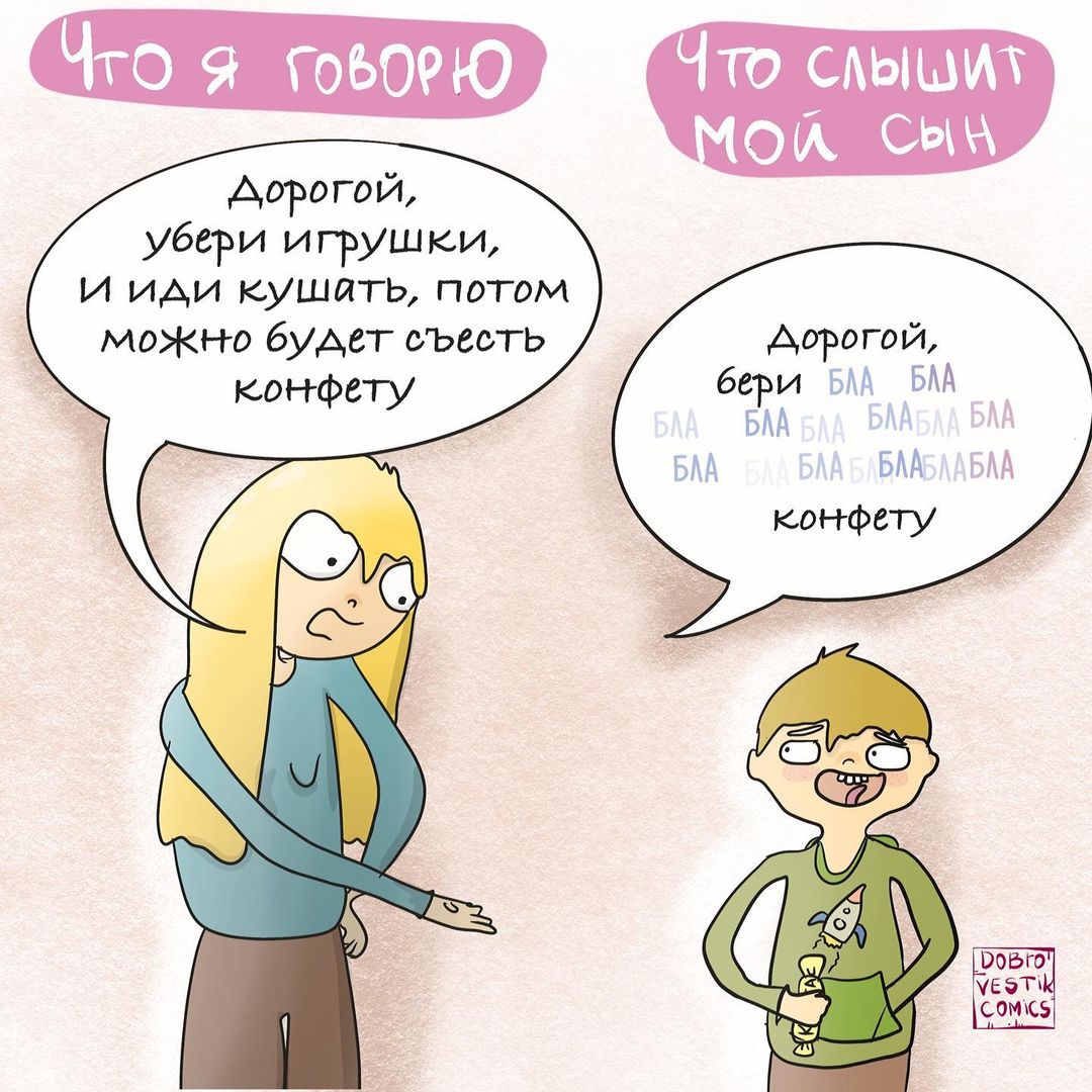 Свои комиксы иллюстратор рисует достаточно быстро и без стеснения говорит об этом людям. Главное, что всем всё нравится! Ведь мама двух погодок выбрала очень популярную тему для своих зарисовок — родительство.