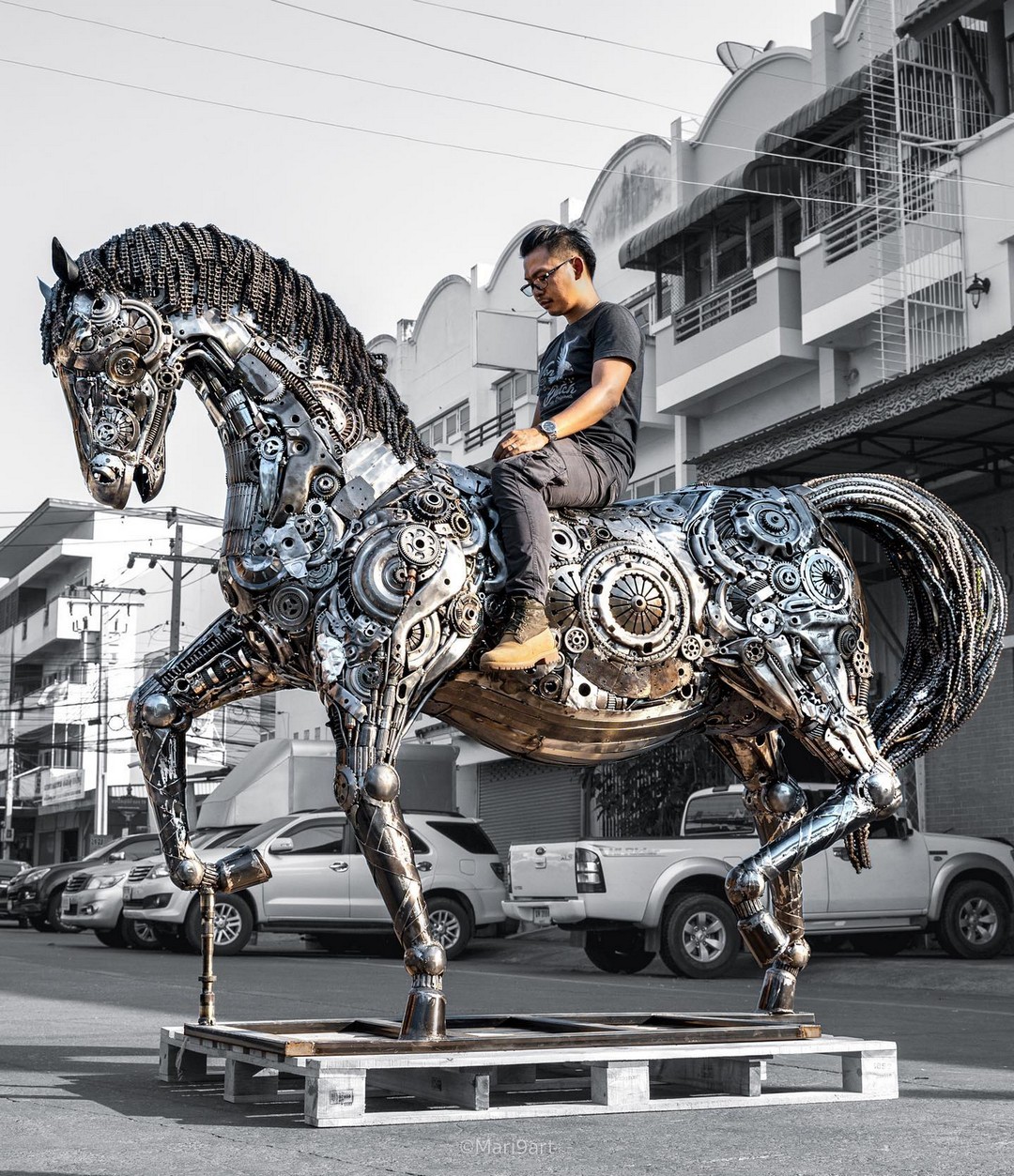Наткнулся в сети на сайт Mari9Art, где представлены удивительные скульптуры из металлолома. Все скульптуры, представленные на этом сайте, сделаны из переработанного металла, и каждая деталь является уникальным произведением искусства. Талантливая группа дизайнеров и мастеров — лучших в Таиланд — создает каждый предмет с нуля, в результате чего получаются уникальные изделия.