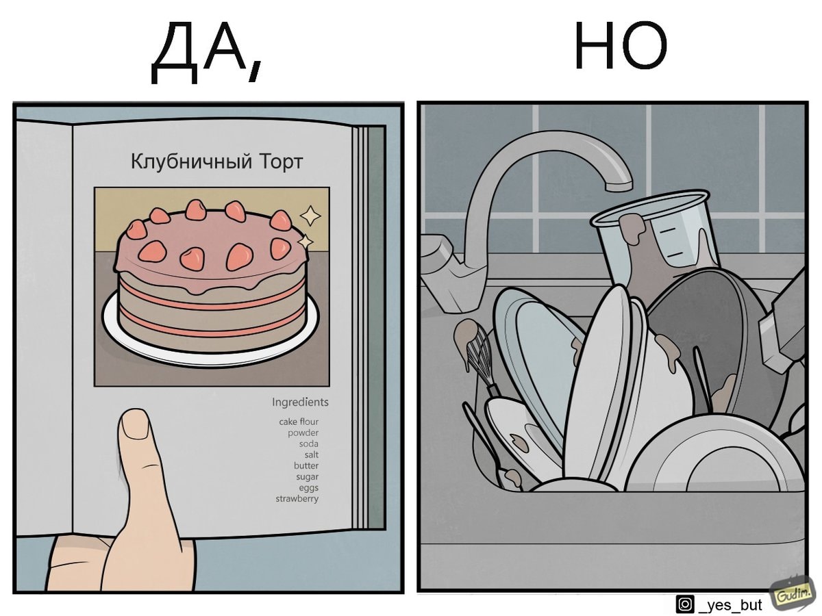 Его иллюстрированный проект «Да, Но» — это возможность по-новому взглянуть на окружающий мир, задуматься над его законами (которые иногда не поддаются никакой логике) и улыбнуться.