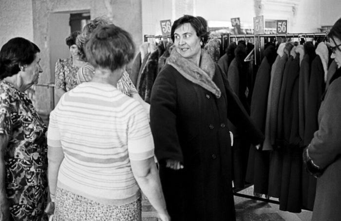В магазинах продавали в основном практичные вещи. Если говорить о верхней одежде, то вся она была приблизительно одинаковая в плане фасона и пошива. Ну и материал тоже был одинаков: немаркие расцветки, плотный драп, ватин натуральный. Такие пальто с воротниками, например, из чернобурки служили годами, а потом их еще могли и «обновить», поменяв лицевую сторону. Стоимость такого пальто составляла плюс-минус 250 руб. Но если учесть срок службы, то затраты себя полностью оправдывали. Дефицитным товаром являлись дубленки. Натуральные шубы в продаже были всегда, но стоили они дорого. Поэтому, как и в наши дни, приобрести себе их могли далеко не многие граждане.