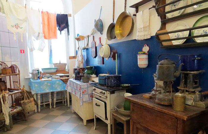 На маленькой кухне размещалось всего 2 плиты и один обеденный стол. Приходилось делить на жильцов не плиты, а конфорки на каждой плите. На каждую семью отводилось по одной конфорке. Об опрятности и чистоплотности жильцов можно было судить по чистоте того небольшого участка плиты, которой они пользовались. Покрытые слоем жира конфорки соседствовали рядом с очищенными до блеска. Поскольку холодильник также был прибором общего пользования, продукты в него помещали, предварительно подписав. Так все знали, кто и что положил сюда.