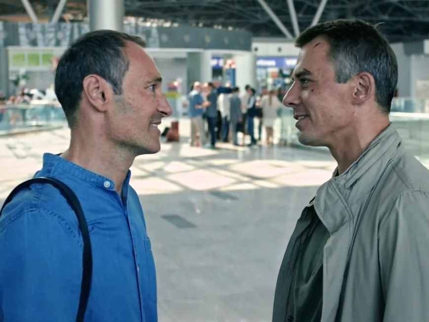 Кадр из сериала «Спящие» (реж. Ю. Быков). Слева актер Дмитрий Ульянов в роли Ивана Журавлёва, журналиста газеты «Зеркало», резидента ЦРУ «Этан»