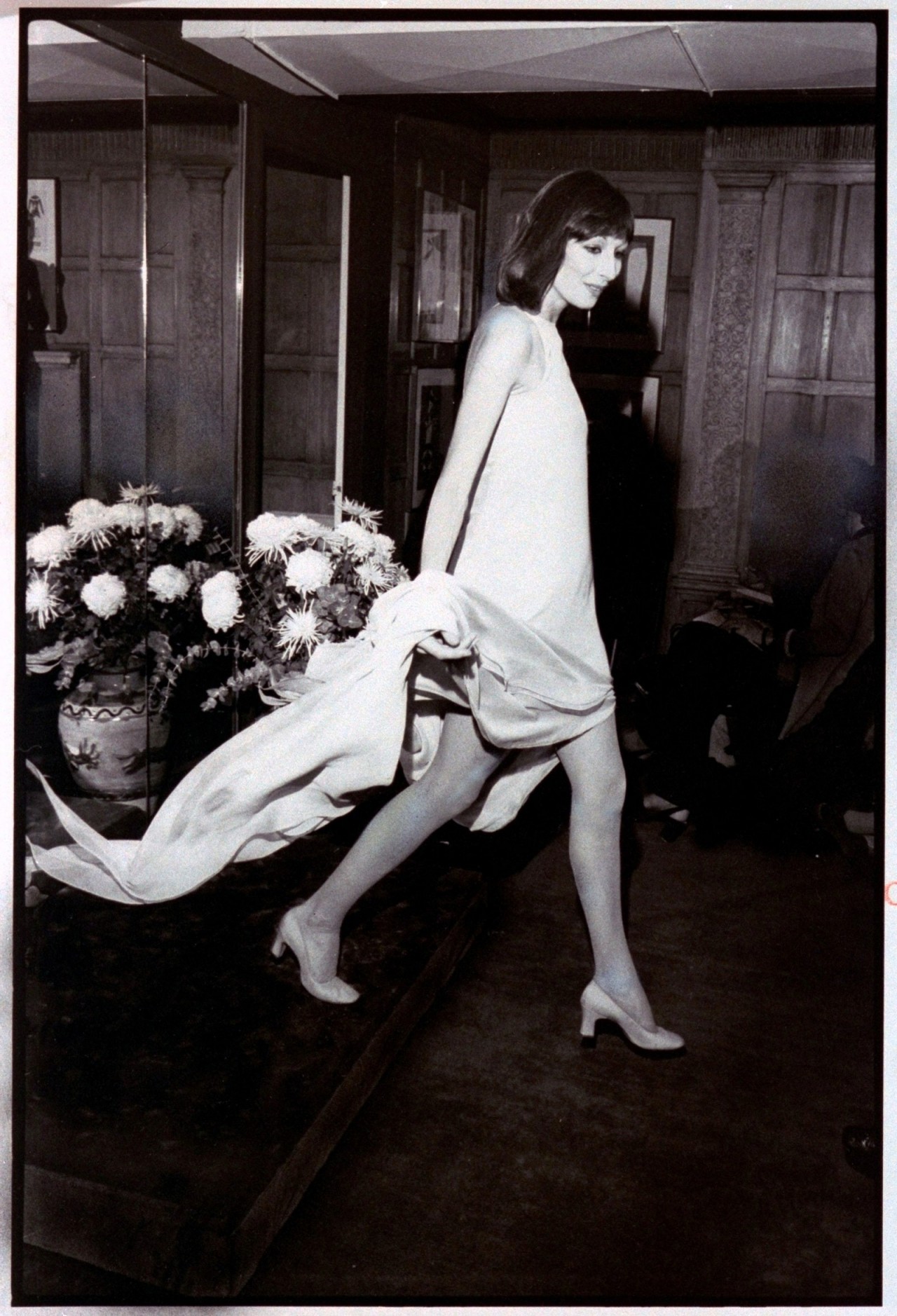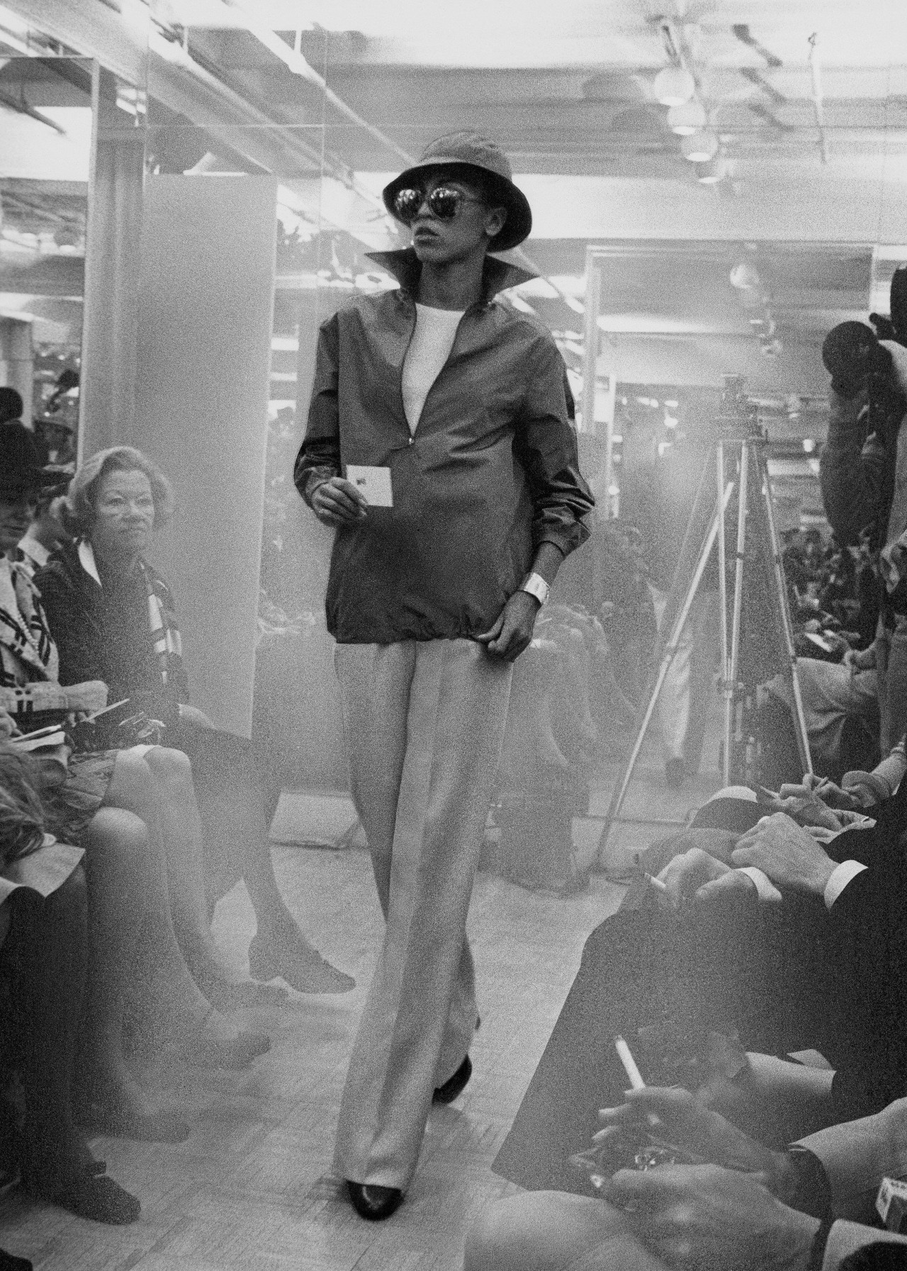 Дизайнер Дайан фон Фюрстенберг на показе мод, 1973.