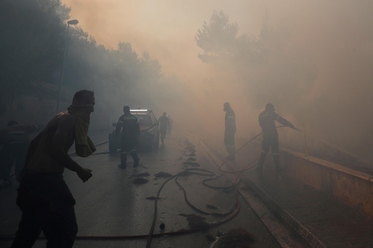 Греческие пожарные сражаются с бушующими лесными пожарами