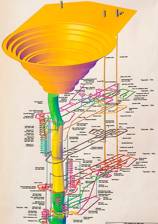 Названий шахт и тоннелей вокруг трубки очень много, но они не так важны. Достаточно пространственной структуры, чтобы понимать, что там происходит.