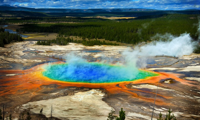Под территорией Йеллоустонского национального парка скрывается супервулкан, который, как полагают, извергался, по меньшей мере, три раза за всю историю человечества: 2,1 миллиона лет назад (тогда его мощность составляла восемь баллов), 1,3 миллиона лет назад и 664 000 лет назад. Последнее извержение оставило углубление в земле размером 54 на 80 километров. Сегодня магма под Йеллоустоуном находится на глубине восьми километров, виду этого некоторые учёные предполагают, что если она когда-нибудь извергнется – а такая вероятность существует – то она похоронит Скалистые горы под пеплом в результате суперизвержения (всё, что имеет мощность восемь или выше по шкале вулканической активности).