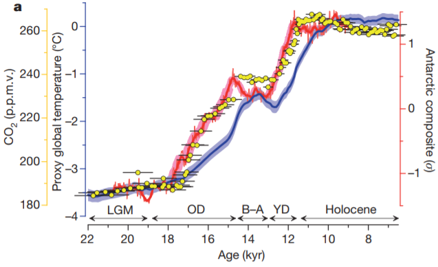 https://www.nature.com/articles/nature10915сначала растет СО2 и потом глобальная температура (синим)