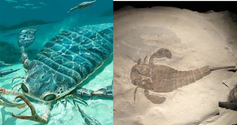 Ракоскорпион – жуткий гигант, длина которого достигала 2,5 метров. Жило это создание около 390 миллионов лет назад и питался рыбой.