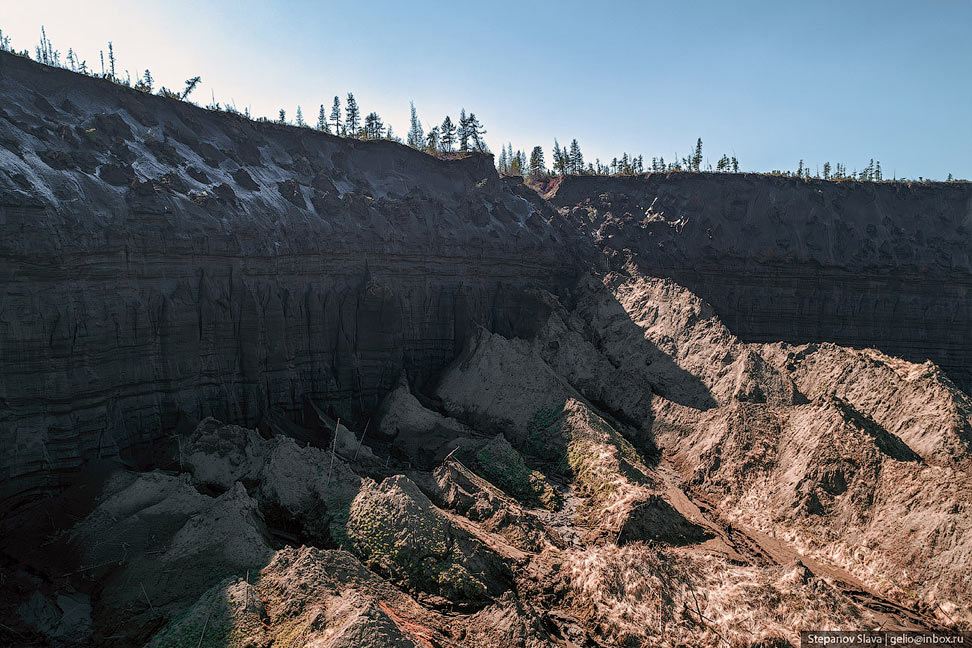2. После этого почва просела, обнажив слой вечной мерзлоты.