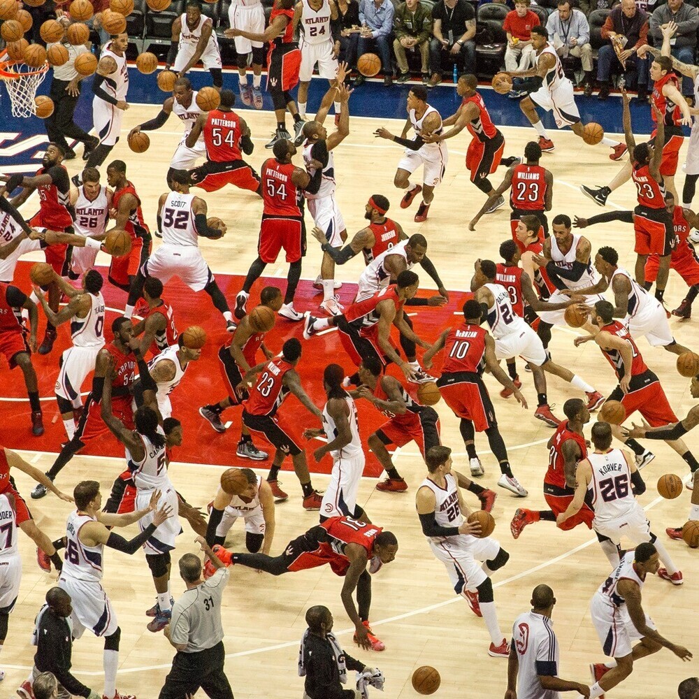 Фотограф складывает воедино много спортивных снимков, сделанных с одной точки в разные мгновения Мир спорта Таким образом получаются суетливые коллажи, на которых все участники фотографий движутся хаотично, выполняя свою программу действий. Pelle Cass