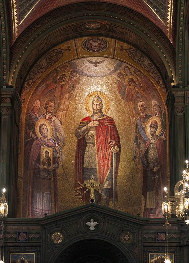 Вообще понятие святости в храме переосмыслено. Хочется сказать, что оно стало более современным и понятным простому человеку. Но это не вульгарная попытка духовенства стать ближе к простому современному человеку. Нет. Это наш глубинный народ непрерывно создаёт своё русское православие, корнями уходящее в глубину веков, в славянское язычество, где боги и предки плечом к плечу становятся на защиту русской земли.