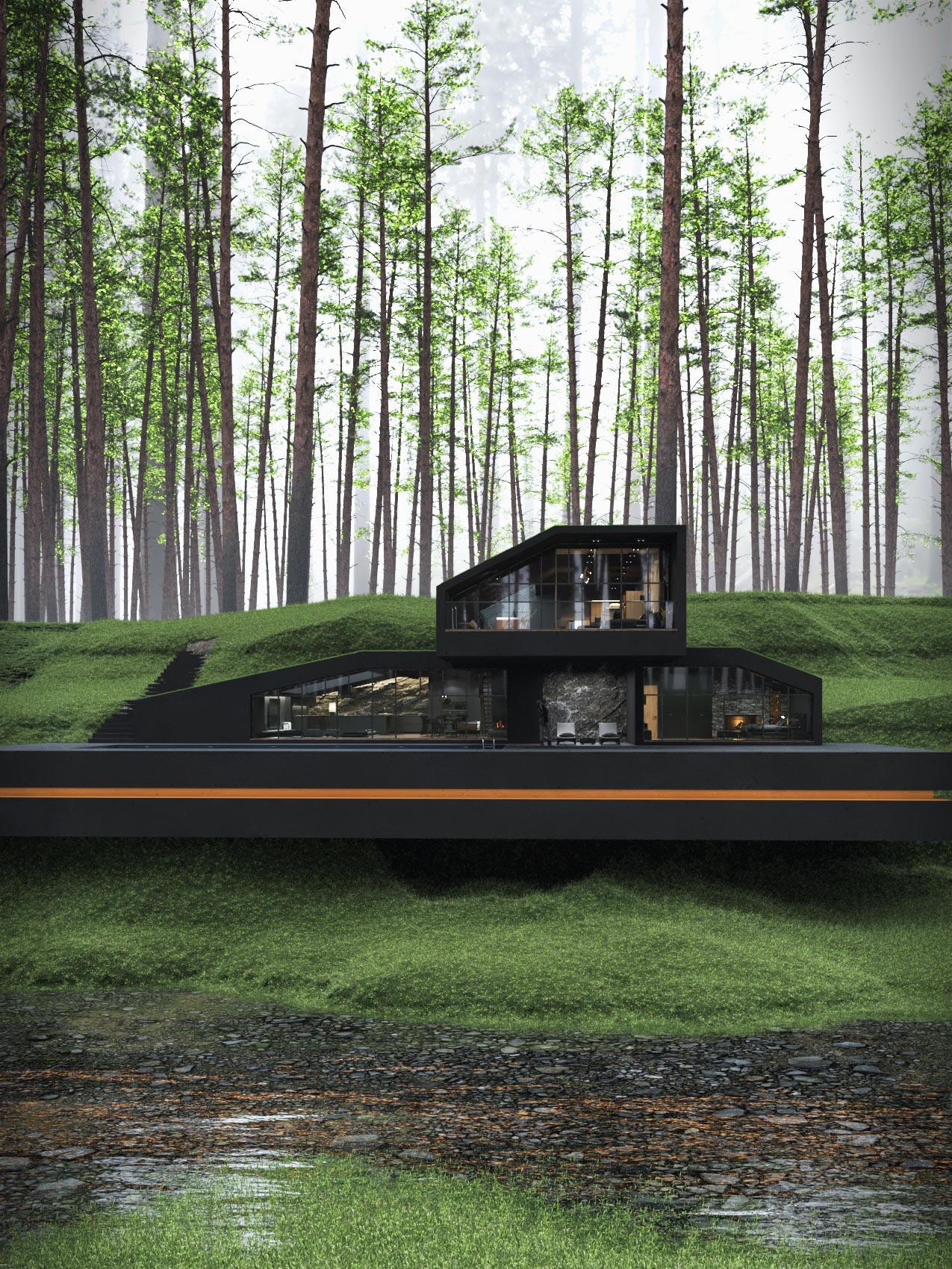 Черная вилла в государственном парке Гарриман, Нью-Йорк, спроектированная Резой Мохташами