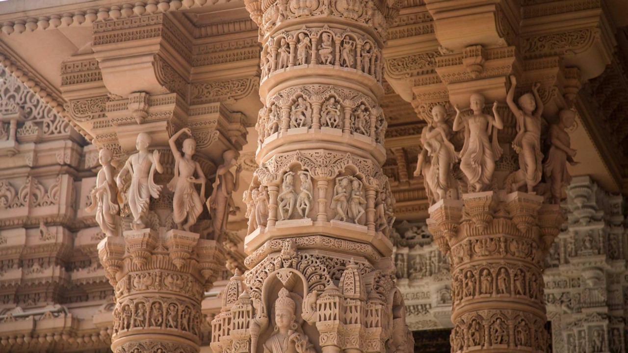 В архитектуре храма смешены разные стили всей Индии. Он построен полностью из розового мрамора и не имеет стальной конструкции, как другие современные здания. Девять куполов и 234 резных столба, с 20 тысячами разных божеств (мурти) и 20 четырехгранными башенками (шихкар). По периметру здания находятся 148 фигур слонов. Храм по своей грандиозности превосходит многие подобные сооружения в мире, благодаря этому его включили в Книгу Рекордов Гиннеса.