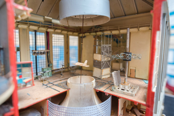 — Каждая аэродинамическая труба предназначена для определенного вида исследований. Так, эта вертикальная установка была создана для исследования свободного штопора самолетов и исследования аэродинамических характеристик моделей вертолетов.