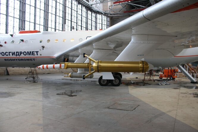 Интересно, что в распоряжении этого комплекса находятся средства активного воздействия на облака. Обрабатывая их жидким азотом через специальное сопло или обстреливая пиропатронами с йодистым серебром (специальная установка размещена в нижней части фюзеляжа), оператор может добиться выпадения осадков (в просторечье это называется «разгон облаков»).
