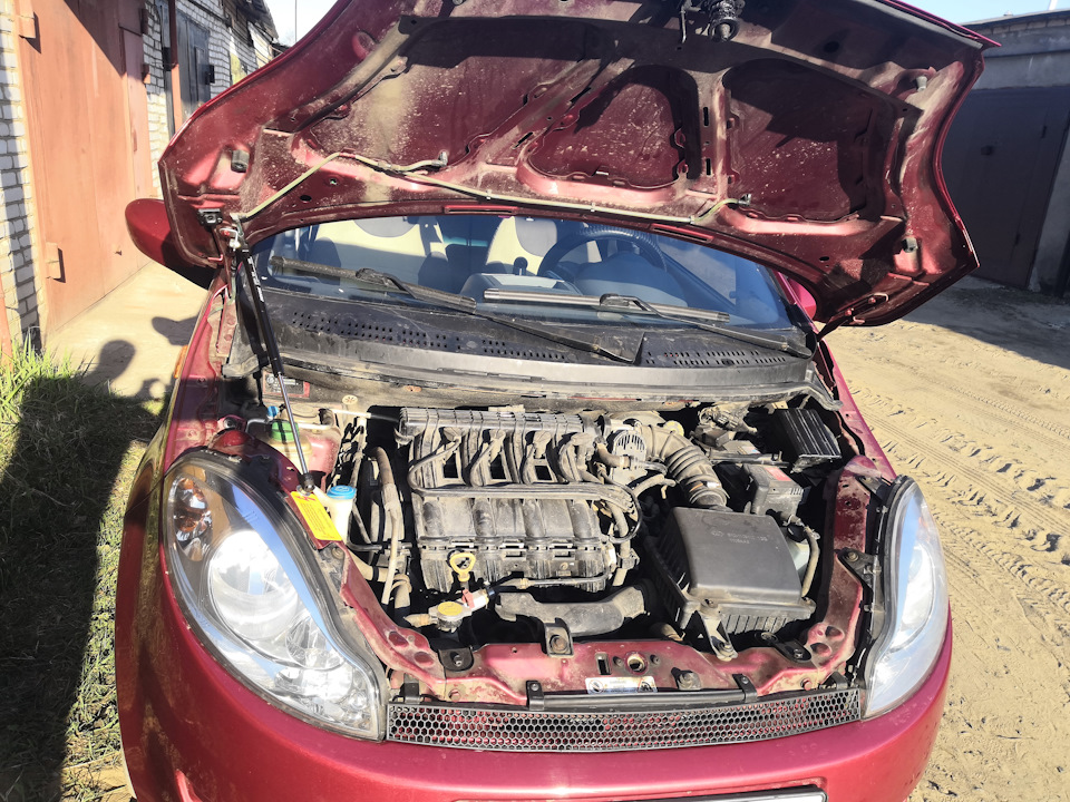 Комплект газовых упоров капота на Весту стоит от 1300 рублей в розницу — но для ВАЗа это дорого, поэтому в машине за 2 миллиона стоит кочерга, причем кочерга криво спроектированная. У нормальных-то машин, даже самых дешевых, такого дерьма нету. Вот смотрите — это пресловутый Чери Кимо: