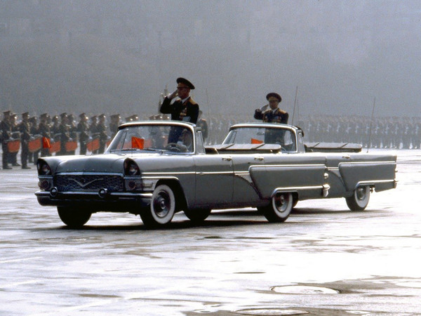 Мы привыкли к «Чайке» в форм-факторе классического четырехдверного седана. Но помимо этого ГАЗ-13 выпускали и в виде кабриолета с электроприводом складного мягкого верха и без дверных рамок. Столь стильная «Чайка» все чаще работала парадным автомобилем. По некоторым данным, кабриолетов ГАЗ-13Б было изготовлено не более 15 экземпляров.