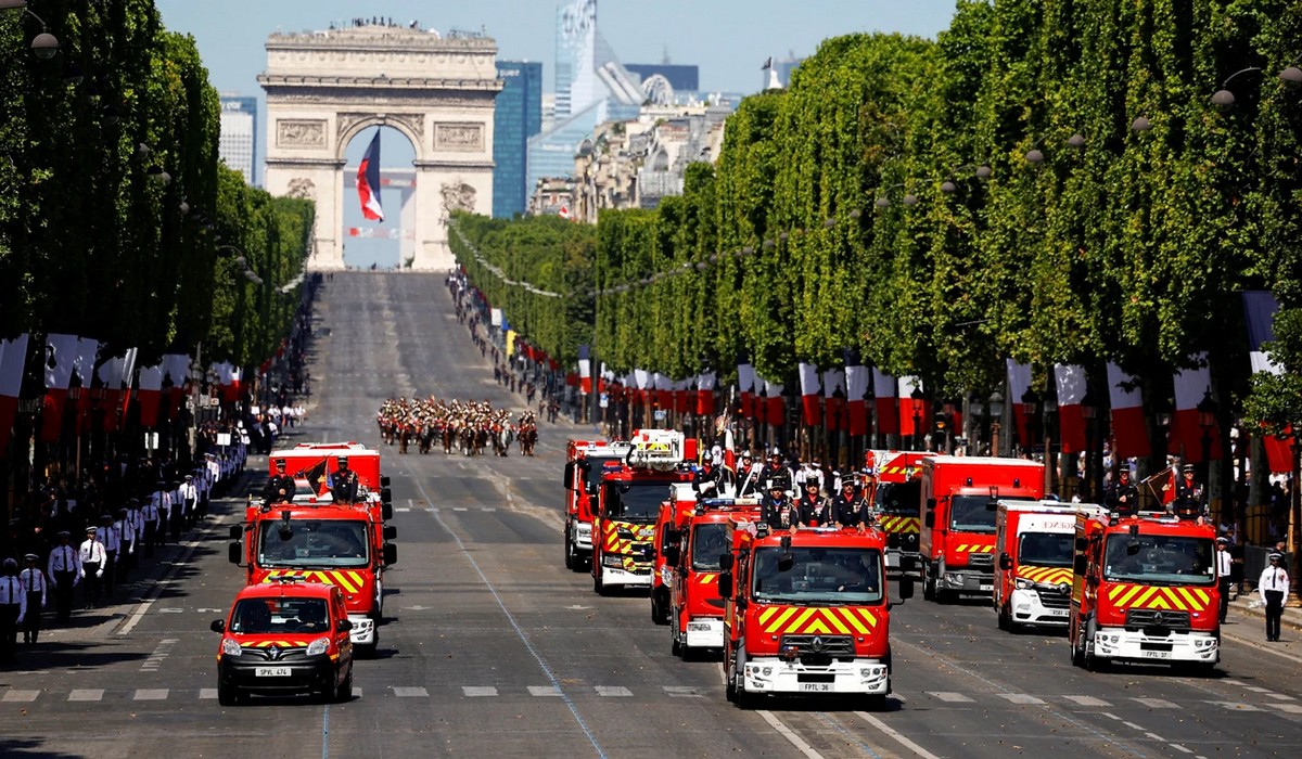 Торжества начались с военной церемонии, за которой следовал грандиозный военный парад по Елисейским полям и пролет военных самолетов.