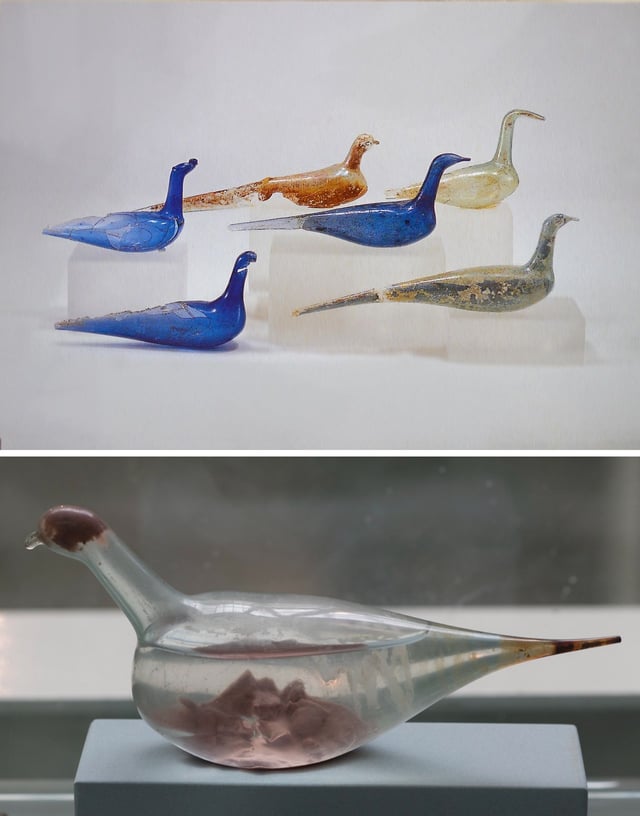 Римские стеклянные сосуды в форме птиц использовались в качестве флаконов для духов