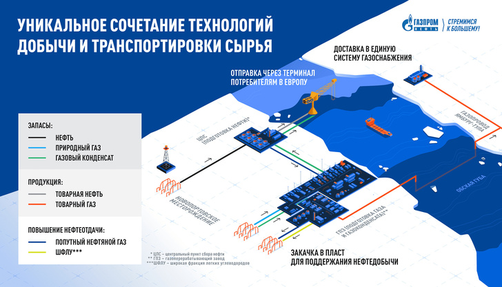 Проект «Газ Ямала» открывает возможности для разработки новых месторождений на юге полуострова Ямал и объединяет их в новый перспективный кластер с потенциалом ежегодной добычи до 10 млн тонн нефти и 20 млрд кубометров газа. Инфраструктура проекта обеспечит сохранение полезного использования попутного нефтяного газа на уровне 95%.