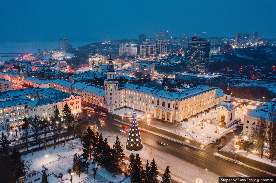 2. Историческая часть города сосредоточена в месте впадения реки Чебоксарки в Волгу – возле искусственно расширенного Чебоксарского залива. Переход через него освещается гирляндами, образующими самый длинный в России, 320-метровый световой мост.