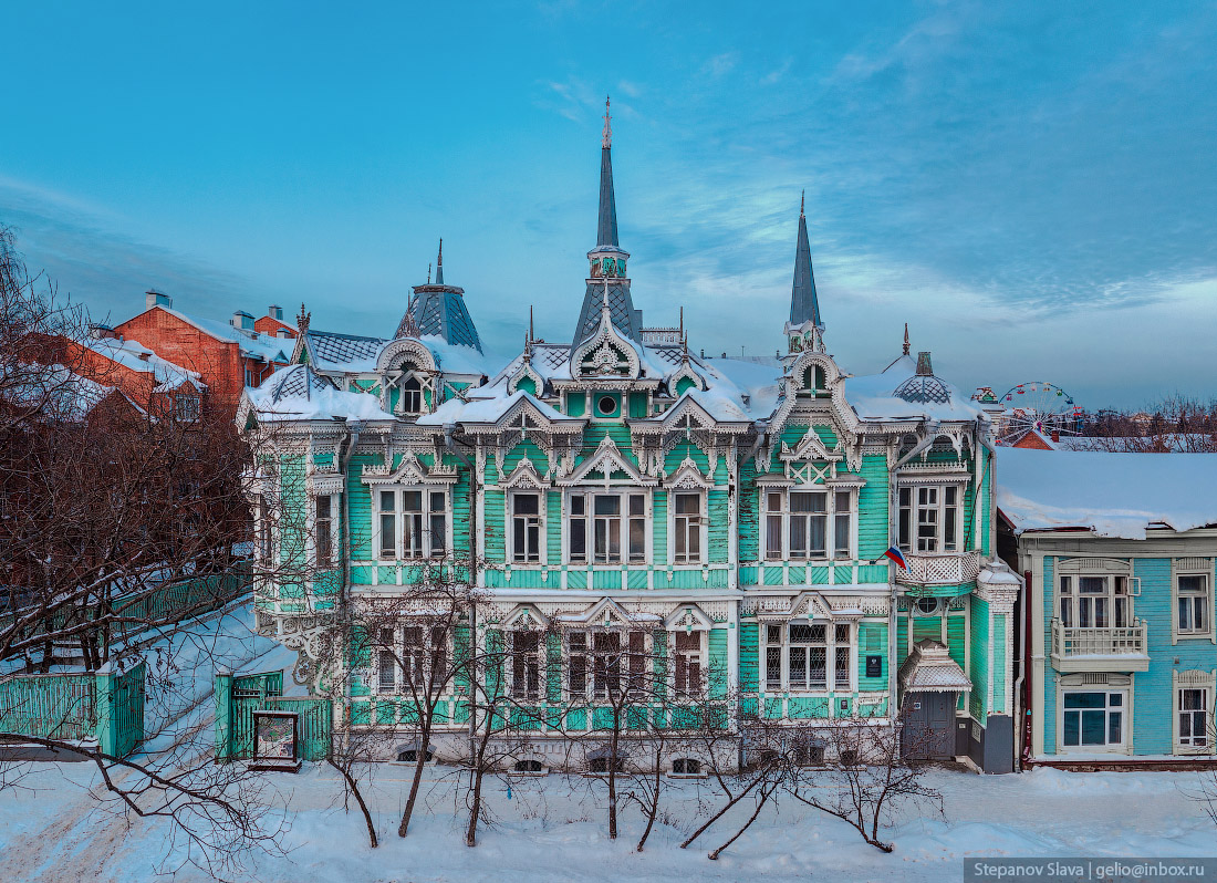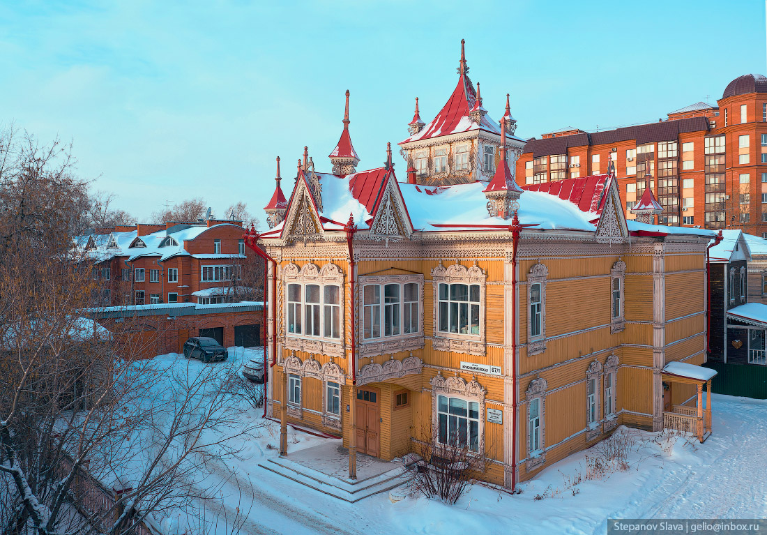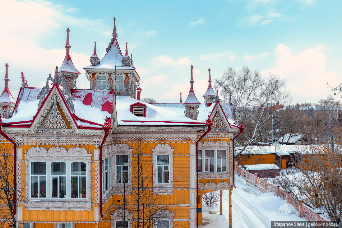21. «Дом с Жар-птицами». Деревянный узор эркера послужил мотивом для эмблемы юбилейных торжеств в честь 400-летия со дня основания города Томска.