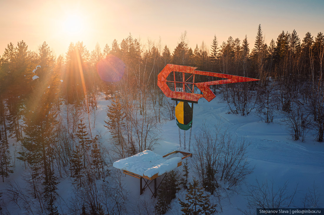 17. Декоративный объект «Факел». Эта композиция символизирует любовь к родному городу — и одновременно это высшая обзорная точка Алдана.