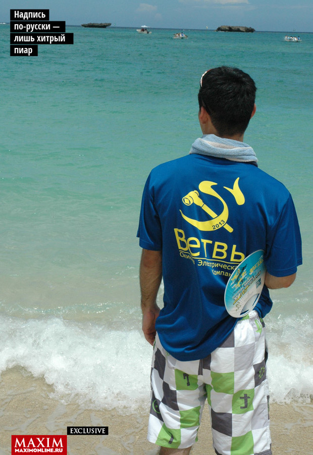 Я подошел к ним, потому что у команды на футболках красовалось на чистом русском языке: «Ветвь. Окинава Электрическая Компания». Я уж подумал, что РАО ЕЭС до Окинавы дотянулось, а оказалось, что местная электрокомпания выбрала диковинный язык, чтобы привлечь к себе внимание.