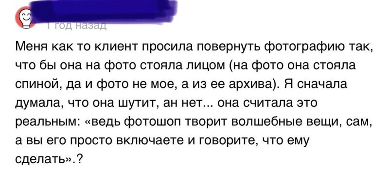 Люди, работающие на себя знают, что самое сложное в этом деле — общение с заказчиками. Иногда персонажи бывают со странностями, поэтому терпение у «самозанятых» должно быть на высоте. В данном посте мы собрали самые курьезные ситуации, которыми поделились сами действующие лица.