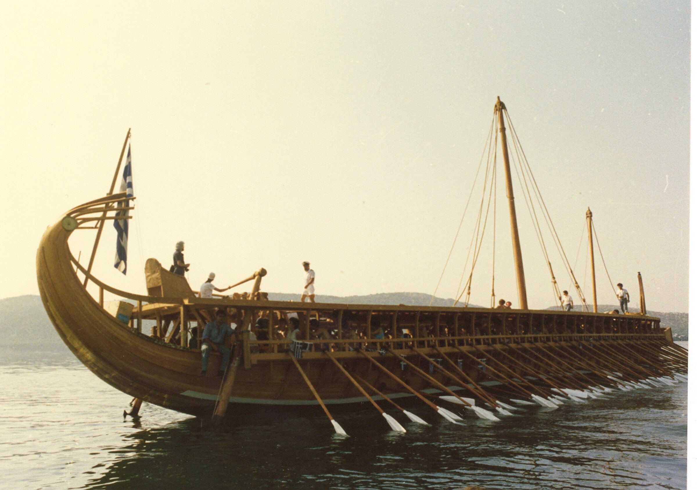 В середине 80-х гг. Греческий ВМФ заказал реконструкцию древнегреческой афинской триремы периода IV в до н.э. у британского корабельного архитектора Джона Коатса. При поддержке специалиста по Древней Греции Джона Моррисона, а также специально организованного треста, корабль был заложен в июле 1987 г. и в августе того же года спущен на воду.